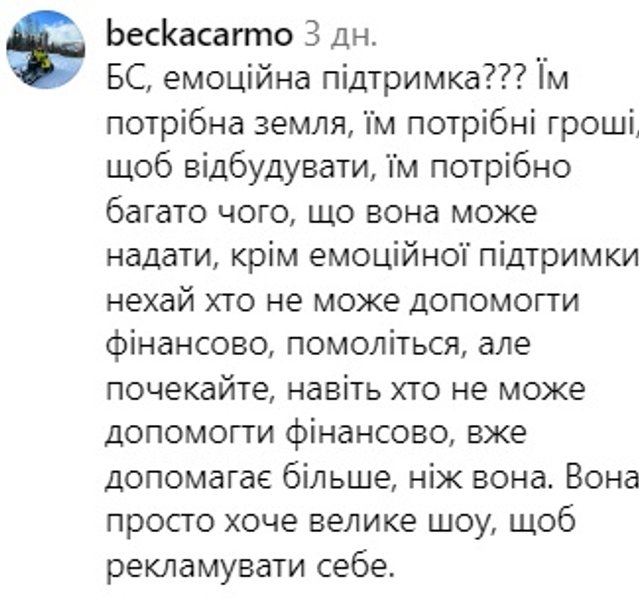 "Она купила подушки и раздала их людям, у которых уже были подушки. Она вошла и вышла через 5 минут. Сначала прийти посмотреть, потом пойти в Costco и купить несколько подушек, а потом вернуться, чтобы их раздать. Я хотел бы видеть ее с местными жителями в течение хорошего часа или двух или более, видеть, как она организовывает, видеть пожертвования, как она раздает еду или туалетные принадлежности, или наводит порядок в кладовой, или выбрасывая мусор", — пишут пользователи сети.