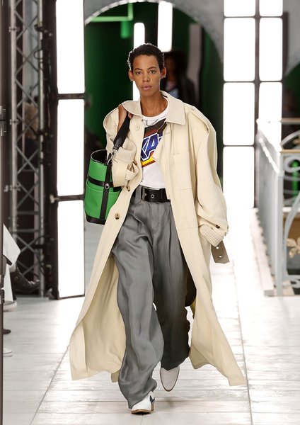Традиционно более повседневное пальто, на подиумах был представлен немного более элегантный подход с силуэтами с поясом и более приглушенной палитрой. Так, Hermes выбрал элегантный полустеганый дизайн в сочетании с элегантным кожаным ремнем и одной из главных тенденций сумок осени/зимы 2023 года — сумкой-ведром — все в тональных оттенках.