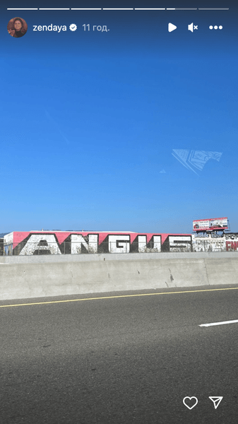 В частности, Зендая показала мурал, на котором написано имя Ангуса Клауда — коллеги актрисы по сериалу "Эйфория", который ушел из жизни летом 2023 года в возрасте 25 лет.
