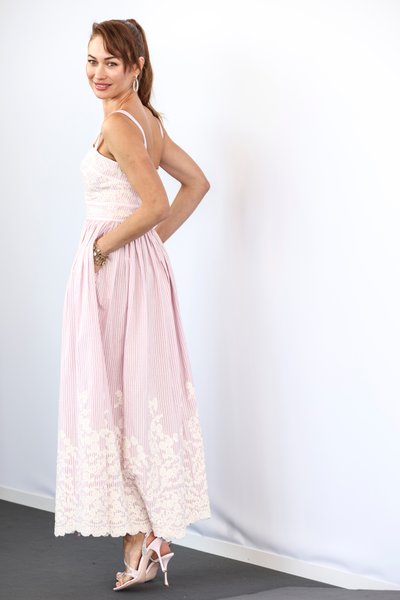 Ольга Куриленко, которая родилась в Бердянске, появилась на публике во время второго дня кинособытия в нежно-розовом платье на бретельках от ливанского дизайнера Elie Saab.