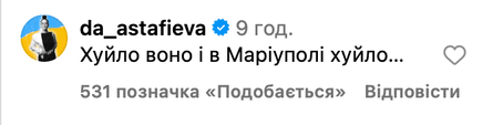 Также в комментариях под публикацией Анатолича высказались и другие украинские знаменитости, в частности Андрей Бедняков и Даша Астафьева.
