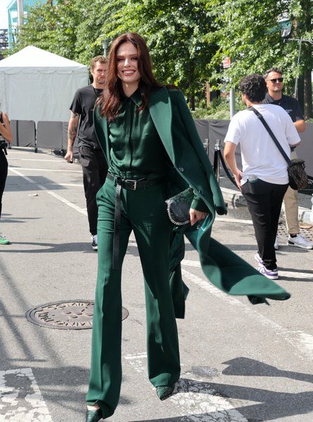 35-летняя канадская супермодель украинско-ирландского происхождения Коко Роша поразила публику изумрудным брючным костюмом, который дополнила клатчем.