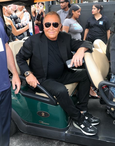 А "виновник события", 64-летний американский модельер и креативный директор бренда Майкл Корс появился на показе в total-black образе, добавив к нему очки и часы.