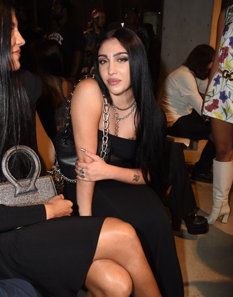 Наследница Мадонны и Карлоса Леона в стильном приталенном платье без бретелек прибыла на показ Luar 2024 в Нью-Йорке в среду, 13 сентября 2023 года.