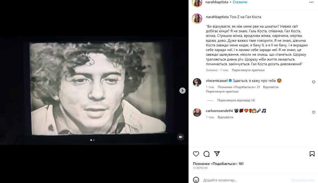 Что касается Нары, то в сторис Instagram она опубликовала фото Касселя, но никак не стала его подписывать.