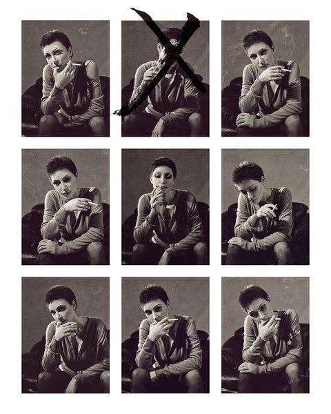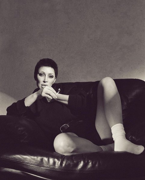 На преимущественно черно-белых снимках Ким предстает в образе эдакой девушки со двора, с сигаретой в руке и вальяжно развалившись на диване. У нее тонкие брови-ниточки, размазанный макияж, никаких сексуальных и облегающих нарядов. Более того, на одном из снимков она – в белой грязной майке.