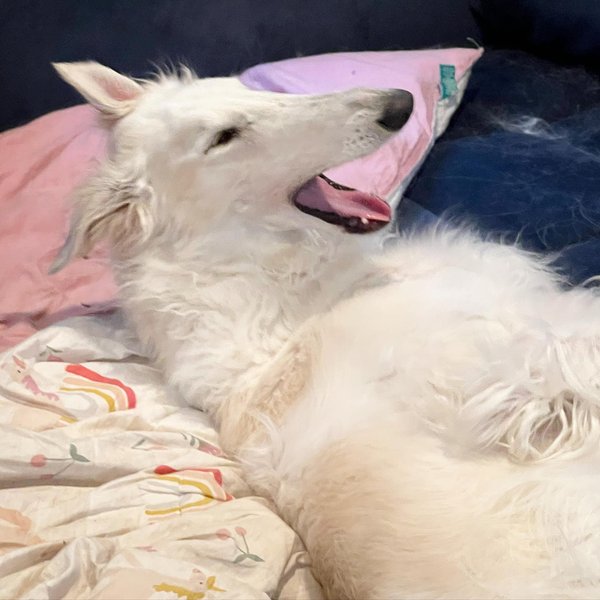 "Когда она была щенком, нас предупредили, что у нее могут быть проблемы с зубами, когда зубы будут впиваться в десны, и, возможно, ей придется удалить клыки. Но она просто как бы переросла это. У нее нет проблем с ее длинным носом, она роняет еду повсюду, как и я. Мы даем ей костный мозг, и она будет пережевывать его вечно, по сравнению с другими собаками, которые съедают лакомство очень быстро. Она так рада видеть людей и других собак, но может сильно пугаться очень маленьких собак. Иногда она злится, но это так глупо и мило, потому что борзые очень тихие. Я не думаю, что мы слышали, как она на самом деле лает", – делится хозяйка Эрис.