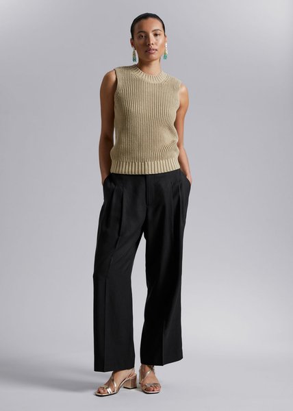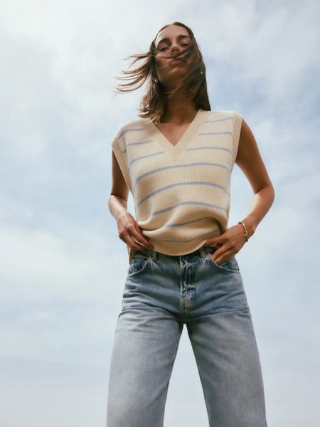 Несмотря на многослойность ансамбля, на выходе получился повседневный, но удачно собранный образ, который идеально соответствует тому, чем изобиловали Недели моды. Вязаный жилет можно увидеть на улицах многих европейских страниц. Более того, серые оттенки зарекомендовали себя как нейтральный выбор, поскольку в этом сезоне модный набор поменял свои фавориты бежевого и светло-коричневого цвета на прохладные серые тона.