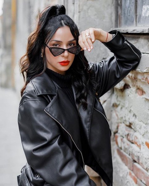 На снимках она представлена в черном наряде и солнцезащитных очках с акцентом на ярко-красную помаду на губах. В своей подписи к фото она заявила, что выбирает такой цвет только в случае, когда влюблена.