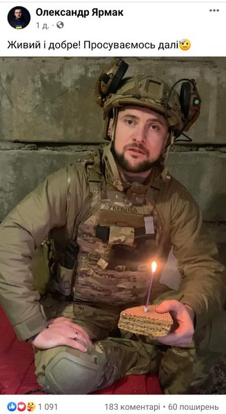 - Живой и хорошо! Продвигаемся дальше, — подписал сообщение Ярмак