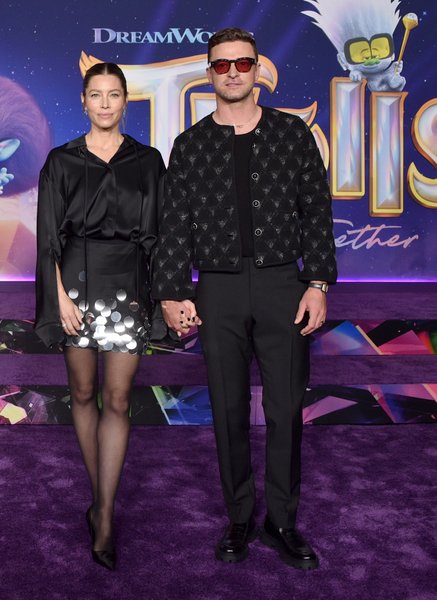Звездные супруги держались за руки во время премьеры фильма "Тролли: снова вместе" в Лос-Анджелесе, одну из ролей в котором сыграл Тимберлейк.