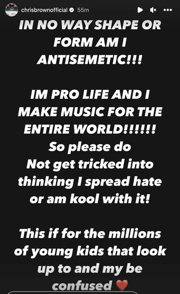 "Я за жизнь и создаю музыку для всего мира! Поэтому, пожалуйста, не дайте себя обмануть, думая, что я распространяю ненависть или это круто! Это предназначено для миллиона маленьких детей, которые смотрят на меня и могут быть сбиты с толку", – заявил он.