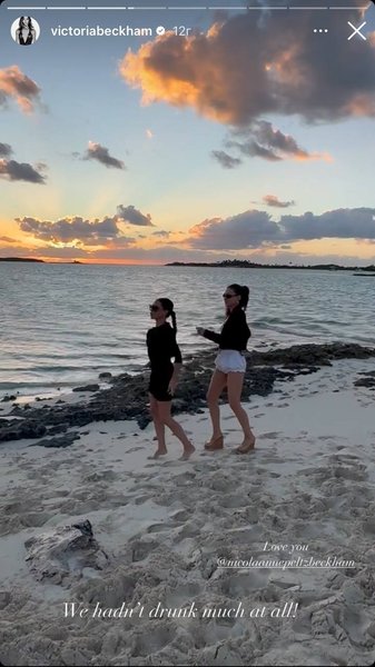 Виктория и Никола станцевали на пляже. Певица продемонстрировала черное мини-платье, пока жена ее первенца позировала на камеру в белых шортах. Двое знаменитостей были в солнцезащитных очках.