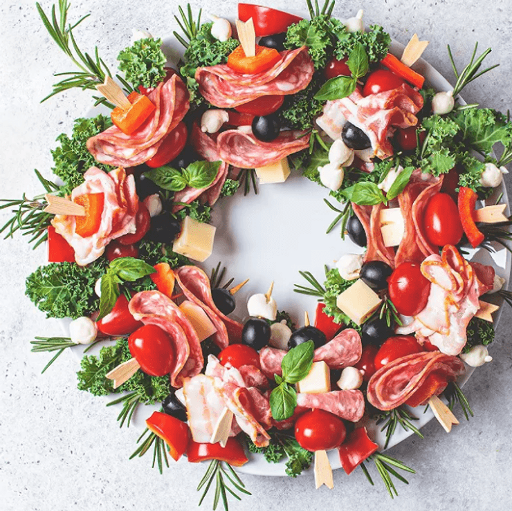 Подарите вашим гостям восхитительные пикантные шашлычки в форме изысканного рождественского венка. Просто положите их на большое белое блюдо по кругу. Идея очень проста, но вау-эффект гарантирован. Время приготовления — 15 минут.