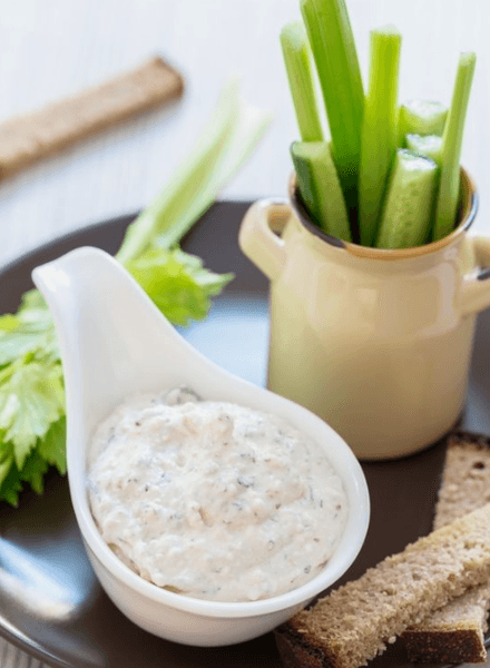 Это действительно легкий аперитив, который привлечет тех, кто заботится о своей фигуре. Букетики из сырых овощей могут быть бесконечно разнообразными. Также можно разложить соус по нескольким тарелкам и приправить каждый разными специями — тмином, перцем чили. Соус также можно подавать в качестве закуски из сырых овощей. Играйте с фантазией и впечатляйте всех гостей. Время приготовления — 10 минут.