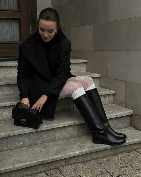 У вас еще не было black look? А попробуйте! Например, высокие сапоги на широком каблуке вместе с твидовым пальто. Впечатление гарантировано.