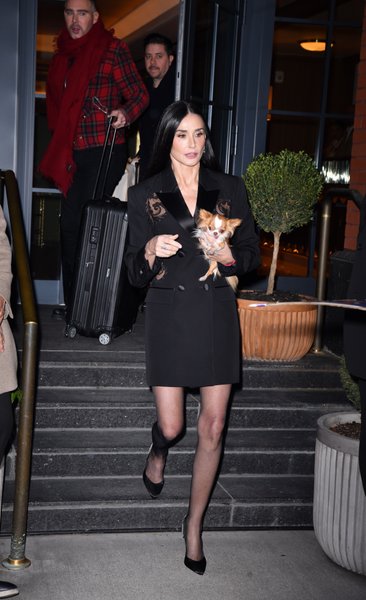 Для появления на публике экс-супруга Брюса Уиллиса выбрала эффектное платье-блейзер. Ее "сопровождал" домашний любимец Пилаф.