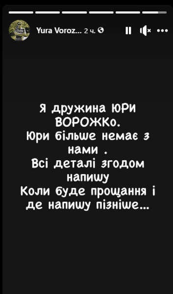 "Друзья у меня такая новость, что я просто в шоке. Я думала, что это просто какой-то фейк, или ложь, но нет, это на самом деле и нашего друга, Юры Ворожко, больше нет с нами", — сказала Екатерина.