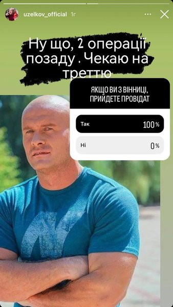 "Ну что, 2 операции позади. Жду третью. Если вы из Винницы, придете проведать?", — написал Узелков.