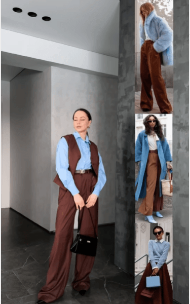Коричневый и голубой — это стильное сочетание цветов этого сезона. Коричневый добавит тепла и уюта, тогда как голубой создаст свежий и элегантный акцент. Это удачное сочетание, которое выглядит очень гармонично и привлекательно.