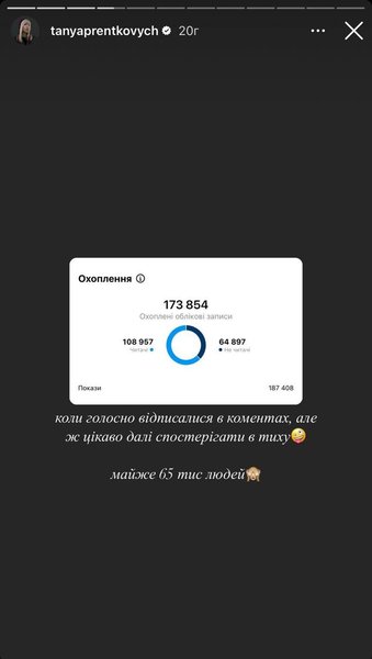 "Когда громко отписались в комментариях, но интересно дальше наблюдать в тихую. Почти 65 тысяч человек", — написала блогерша.
