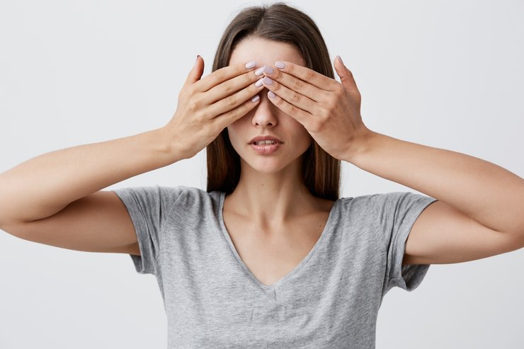 Девушка держит голову руками