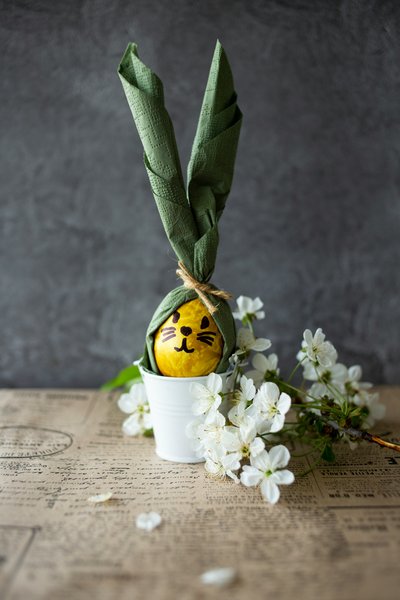 Маленькие цветы, вложенные в пустые яичные скорлупки, могут стать волшебным украшением стола. Пасхальное печенье, выпеченное в форме птиц, зайчиков или цыплят, станет приятным сюрпризом как для детей, так и для взрослых. Оно может быть размещено на элегантном блюде или подано на подносе. Также можно подвесить печенье на ниточках к веткам. Ивовые веточки с мягкими котиками можно поставить в низкие узкие вазы и расположить по всей поверхности стола, дополнив их свежими цветами.