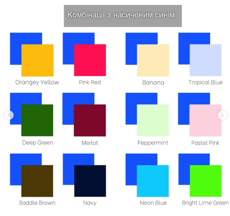 Она отмечает, что яркий электрик, глубокий индиго можно миксовать с белым, оранжевым, красным, голубым, зеленым, черным, шоколадным и желтым.