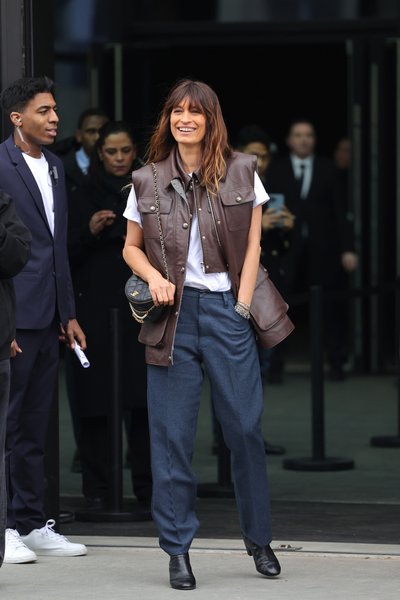 Погрузитесь в тренд Дикого Вестерна, надев винтажную кожаную куртку поверх белой майки. Деталь стиля: вместо предсказуемых техасцев — просто ботинки черного цвета, а вообще возможна любая обувь.