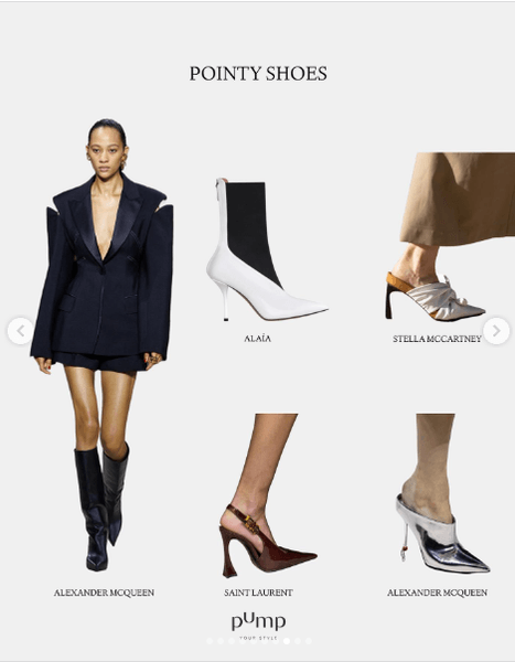 Также стилист рекомендует обратить на разновидности обуви. В частности, этой весной будет преобладать острый носок, настолько острый, что его еще называют a knife-edge (ножевидный угол).