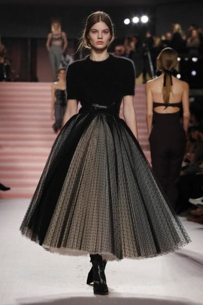 Неожиданной, даже королевской тенденцией весны-лета 2024 являются элегантные платья с характерными юбками структурированного кроя и преувеличенно широким силуэтом, начинающимся от бедер.