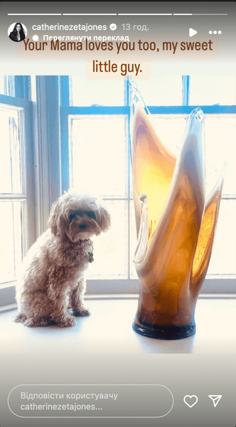 Кроме этого, жена Майкла Дугласа показала фото их домашнего любимца.