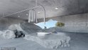 Несмотря на свою мегалитическую структуру, он сохраняет современный вид благодаря стеклянным окнам от пола до потолка, расположенным между гигантскими камнями, и гладкой мебели, встроенной в скалу.