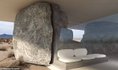 Резиденция Джошуа-Три имеет очень необычный дизайн: плоская белая плита действует как крыша, балансирующая на вершине восьми огромных каменных валунов. Она была выдвинута командой YZY как идея арендного, относительно дешевого и автономного жилья.