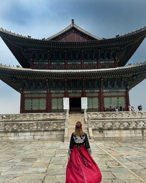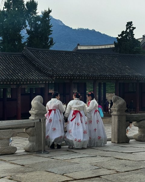 Телеведущая примерила традиционную одежду местных женщин и показала живопистные пейзажи Сеула.