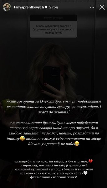 Блогер Татьяна Пренткович рассказала, смогла бы она построить отношения с человеком с инвалидностью. Об этом пишет "РБК-Украина" со ссылкой на ее Instagram.