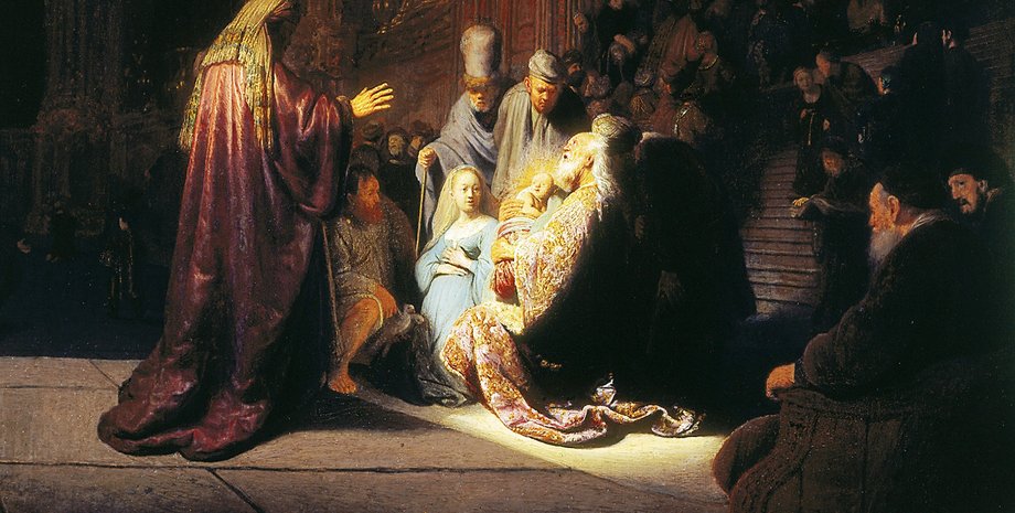В храме их встретил старец Симеон, которому было предсказано, что он не умрет, пока не увидит Спасителя. Когда он взял на руки младенца, то произнес знаменитую молитву "Ныне отпущаеши" и предсказал Марии, что ее Сын станет Спасителем, но ей самой предстоят страдания.