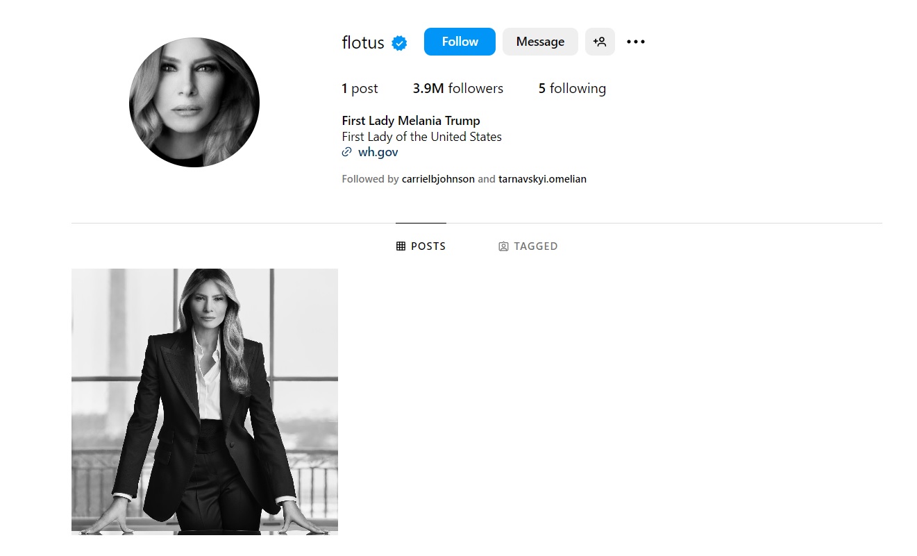 Миссис Трамп не активничает и в социальных сетях. На ее странице в Instagram есть только один пост: официальный портрет первой леди.