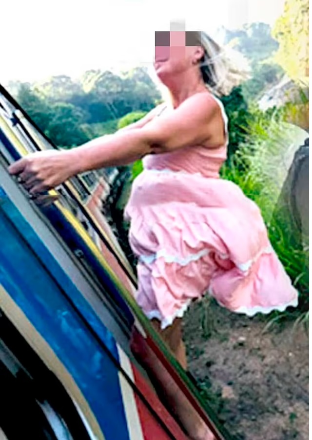 Женщина решила сфотографироваться, высунувшись из двери поезда, идущего на полном ходу, но не заметила большой камень.