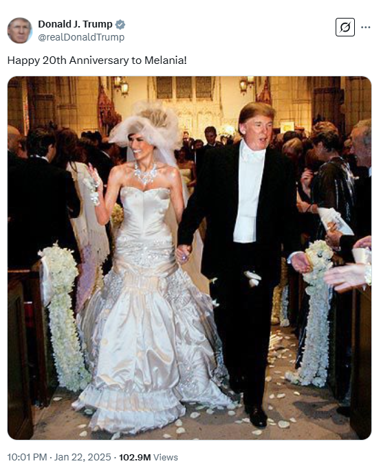 Дональд Трамп сделал предложение бывшей модели из Словении по пути на Met Gala 2004 года. В январе он поделился архивной фотографией Мелании в платье во время празднования двух десятилетий брака.