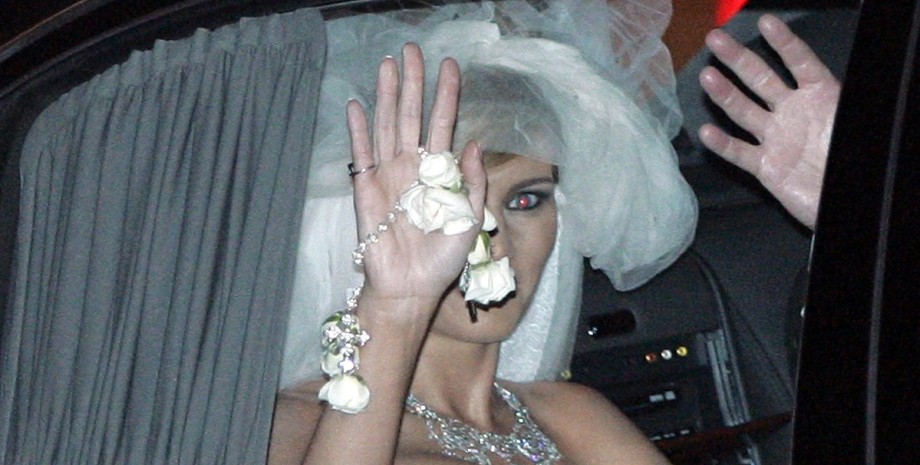 Первая леди США показала свой свадебный наряд с пятиметровой фатой на обложке Vogue в феврале 2005 года сразу после своей свадьбы в Палм-Бич. На пошив платья стоимостью, по разным данным, от $100 тыс. до $210 тыс. ушло более 90 метров белого атласа дюшес. Его расшивали хрустальными бусинами в течение 550 часов. Вес наряда – 27 кг.