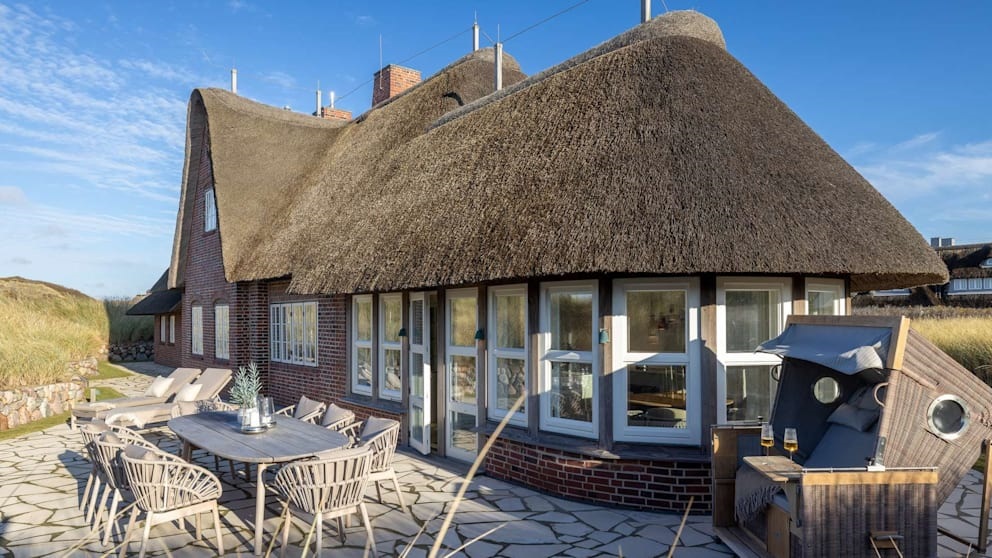 Дом Min Lütten (моя малышка, — ред.) имеет соломенную крышу и расположен прямо в дюнах Веннингштедта с прекрасным видом на Северное море.