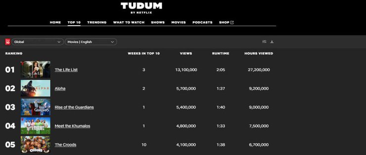 Рейтинг самых просматриваемых фильмов недели публикует Tudum.