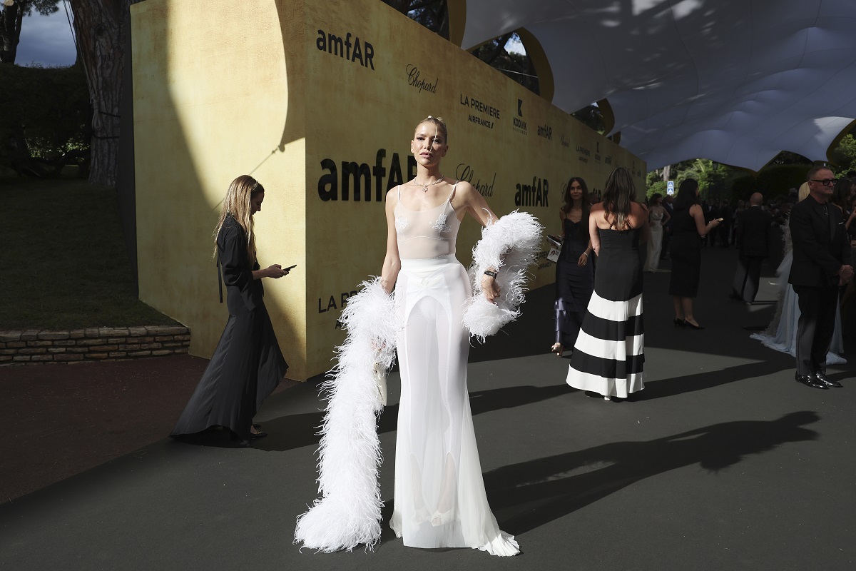 Как пишет Daily Mail, она надела на благотворительный гала-вечер amfAR, Фонда исследований СПИДа, белое и полностью прозрачное платье на бретелях с вышивкой в виде херувима на груди.