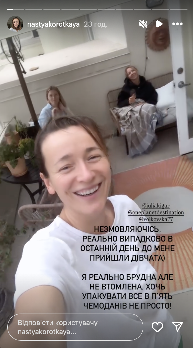О своем решении вернуться домой с двумя детьми звезда экрана рассказала в Instagram. Путь в Украину включал 11-часовой перелет и 4-часовую поездку на машине.