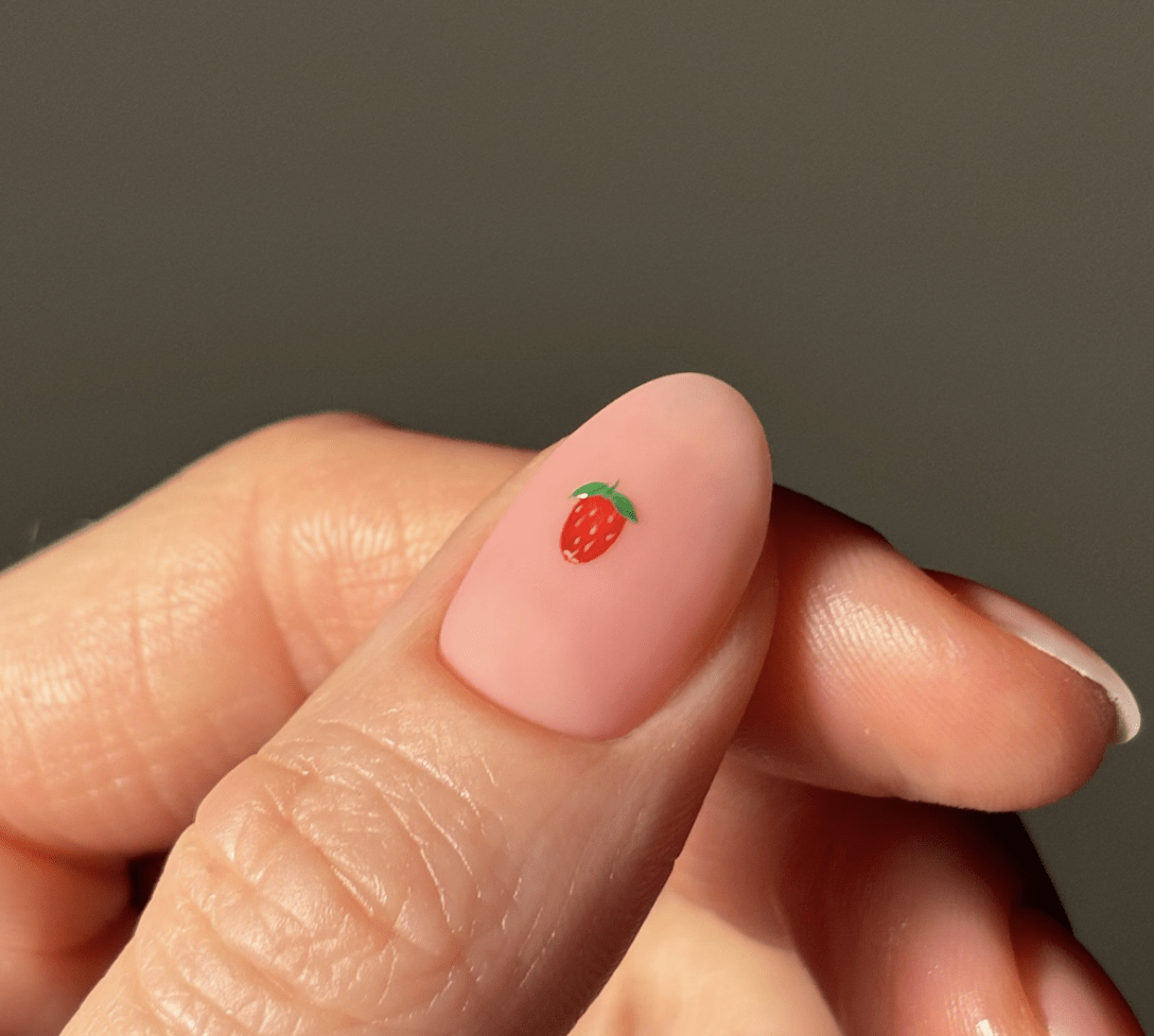 Клубника, апельсины, вишни, черника, крошечные и нежные, каждый из них — как маленькое произведение искусства, нарисованное на ваших ногтях, а не где-то на холсте. Благодаря небольшому масштабу и ультранейтральной основе, сладкие маленькие фрукты остаются почти незаметными и не перегружают общий образ.