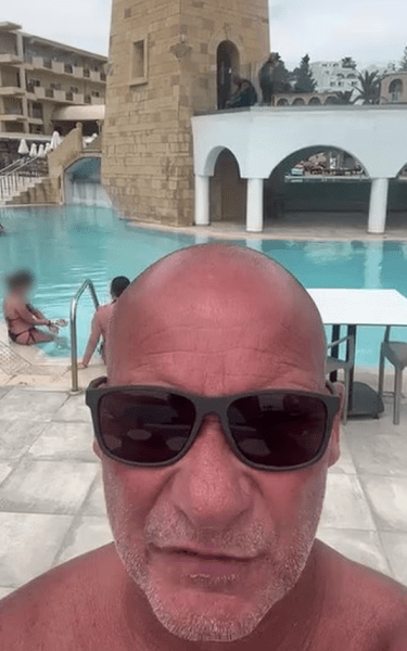 "Мы за дополнительную плату забронировали номер с выходом к бассейну. Когда попали в номер, я открыл шторы, чтобы посмотреть на бассейн. Лежаки были очень грязными, а люди — коричневыми, но не от загара", — добавляет мужчина.