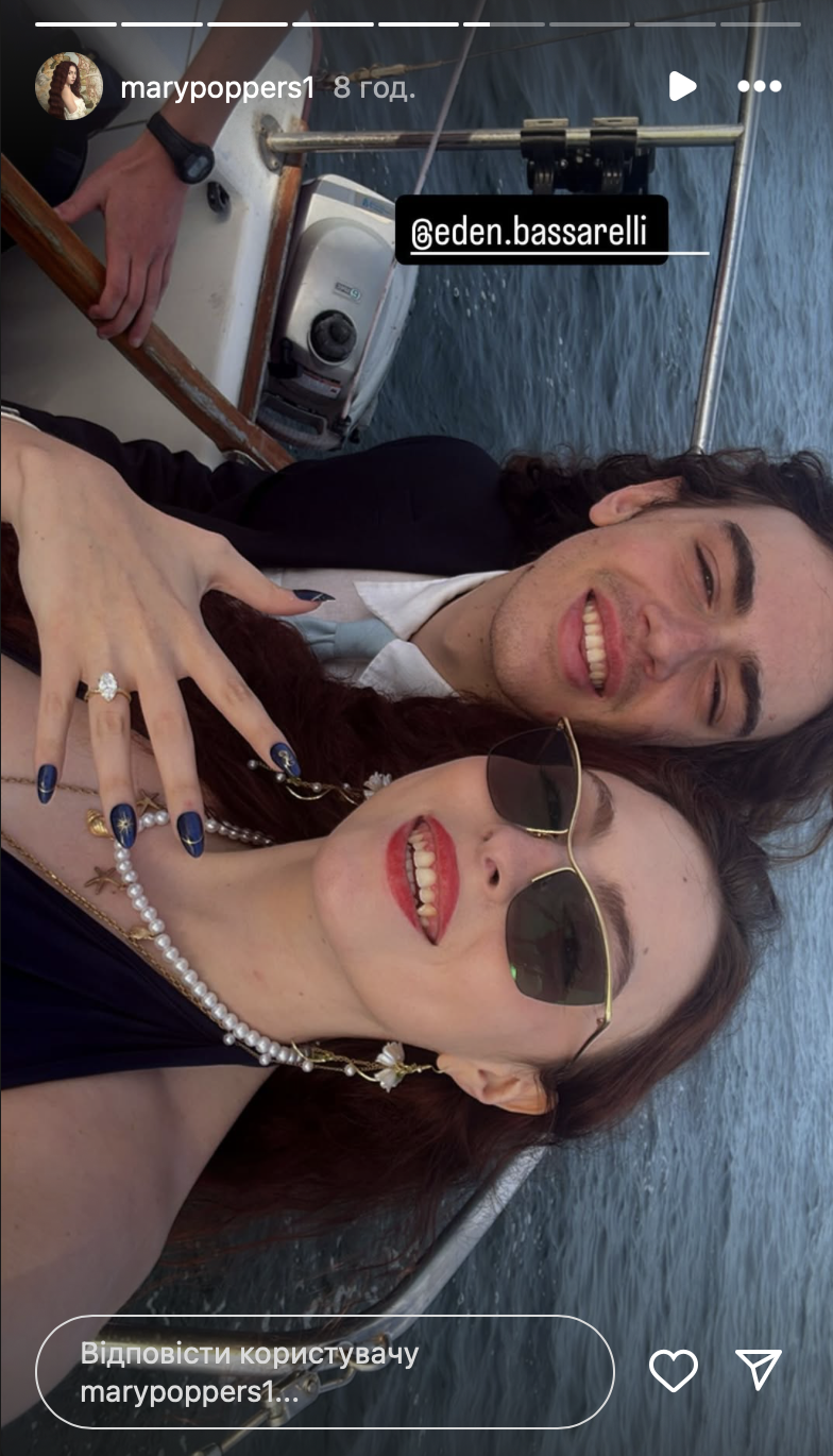 3 июля 20-летняя Мария опубликовала ролик с яхты, на которой ее бойфренд делает предложение. Юноша по имени Эден Пассарелли подарил возлюбленной букет цветов и обручальное кольцо. Дочь певица ответила "да" и поцеловала будущего мужа. На эти новости уже отреагировала звездная мама невесты. Артистка сделала репост видео и написала, что узнала об изменениях в личной жизни дочери благодаря сети.