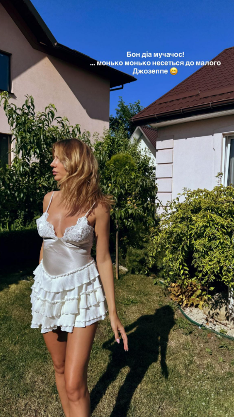 "Бон диа, мучачос!.... Монько монько несется к малому Джозеппе", — написала известная телеведущая под снимком, сделанным во дворике частного дома.