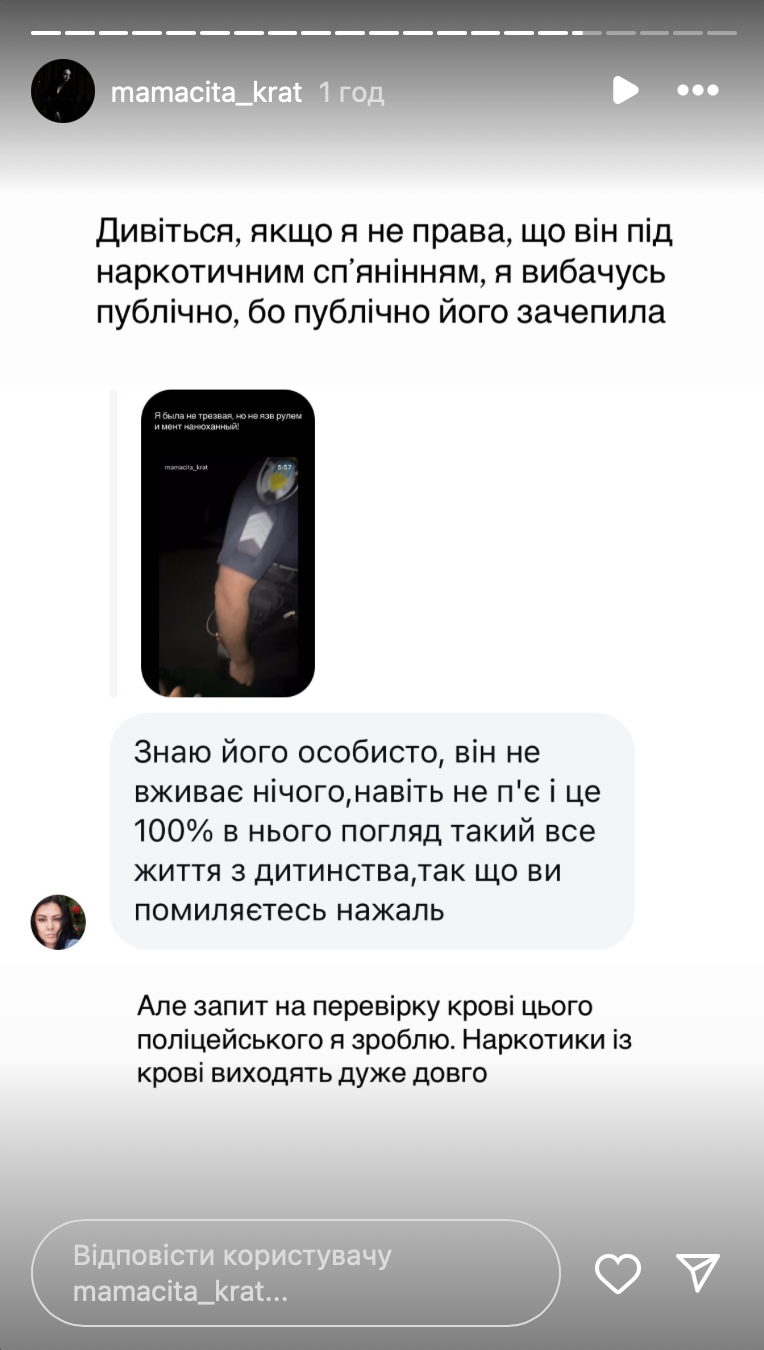 После того, как люди начали писать, что полицейский на видео всегда имеет такое выражение лица, Анастасия пообещала забрать свои слова обратно и попросить прощения, если тест на запрещенные вещества будет отрицательный.